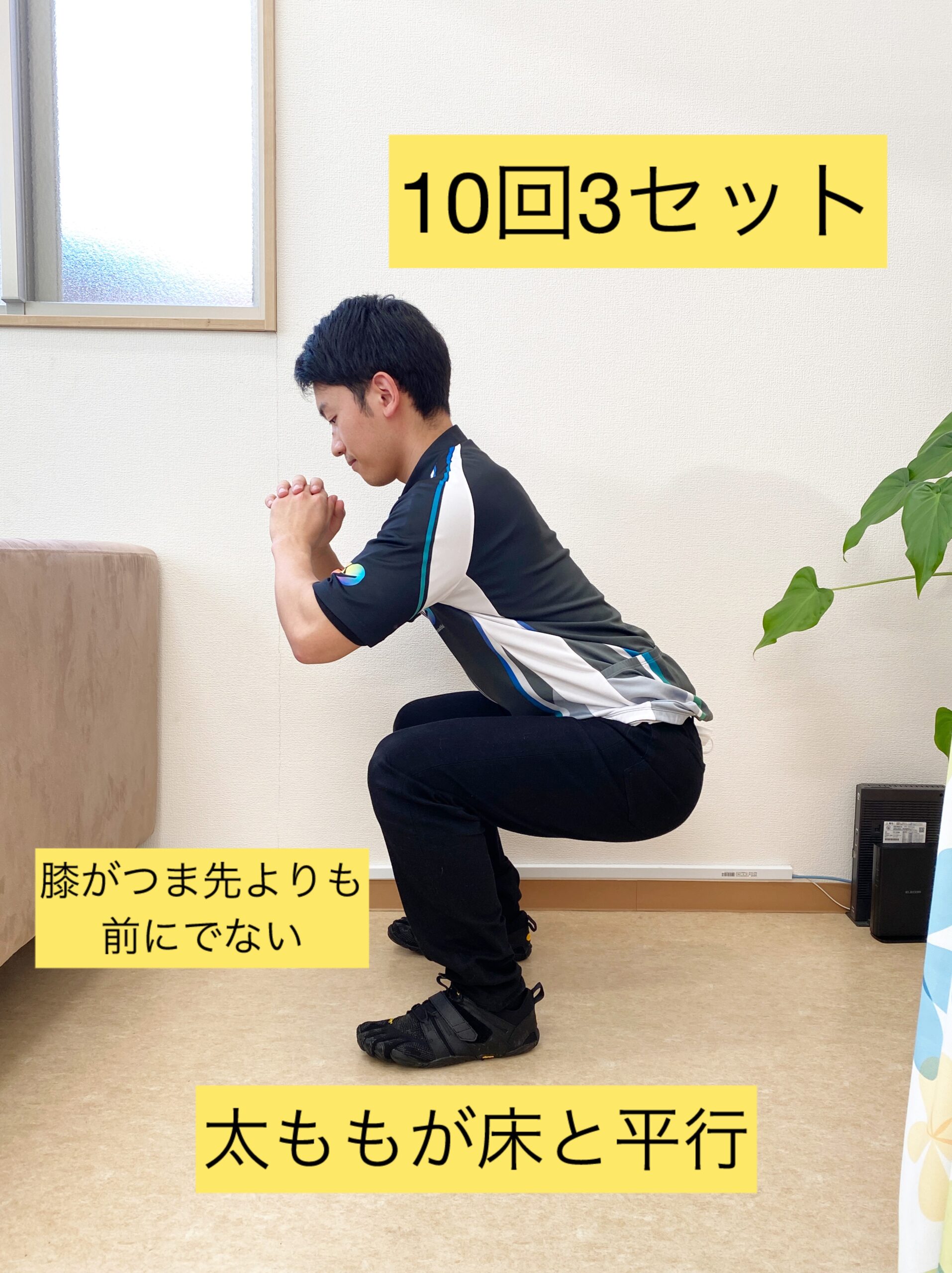 ※膝がつま先よりも前に出すぎないように