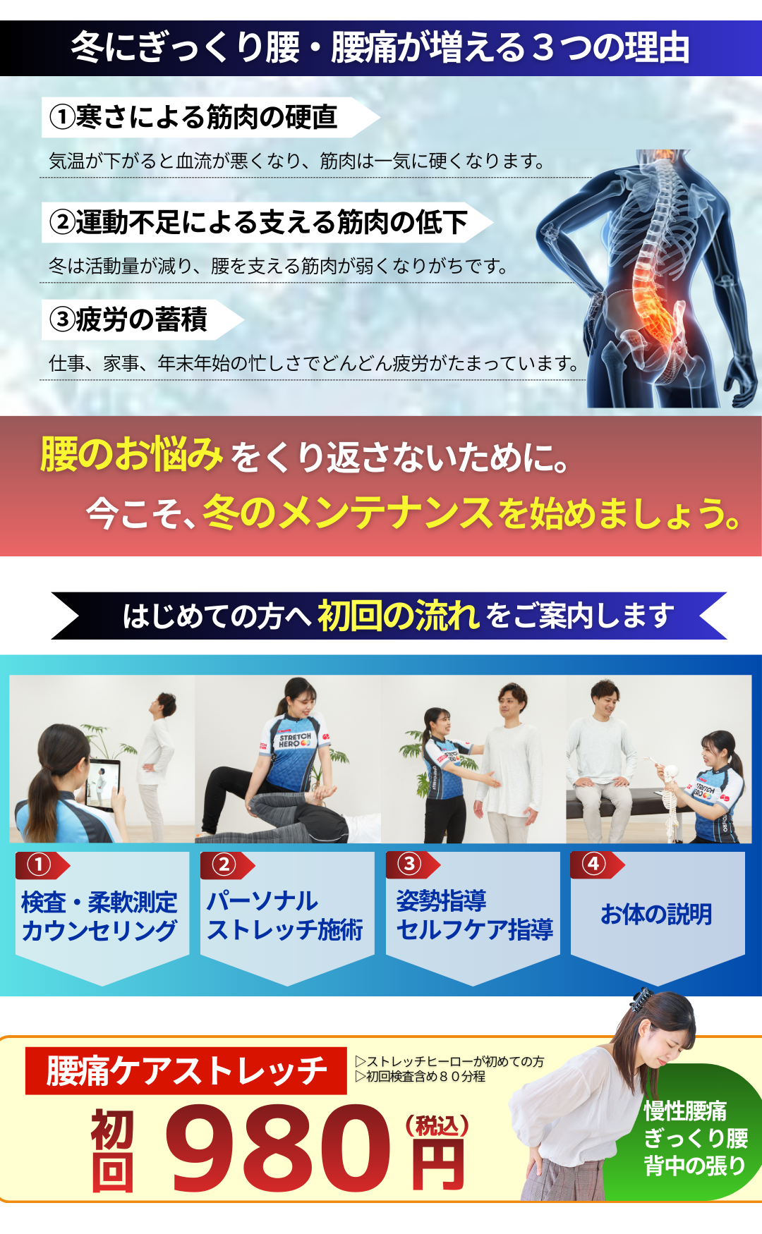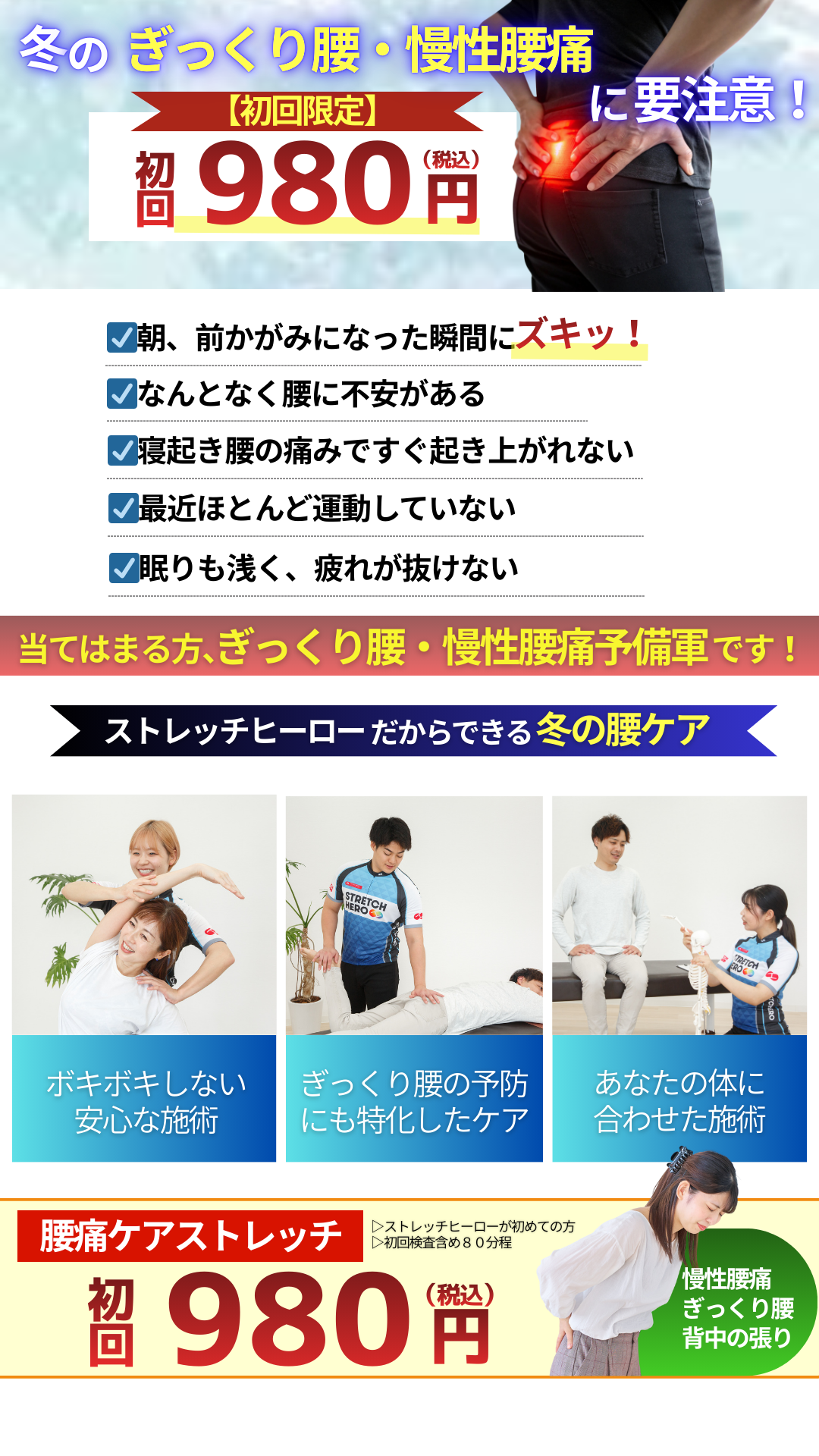 腰痛ケアストレッチキャンペーン を見て』とメッセージください。